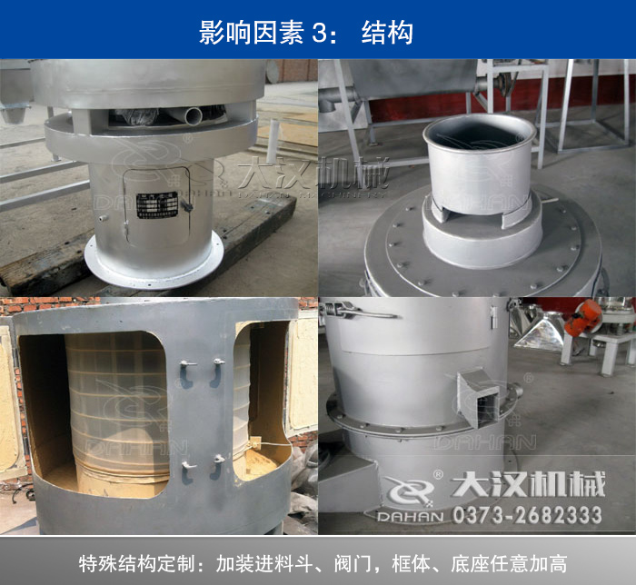 碳化鎢粉氣流篩分機(jī)的結(jié)構(gòu)也是影響價(jià)格的重要的因素,大漢振動(dòng)篩支持產(chǎn)品特殊設(shè)計(jì)定制,可以根據(jù)您的要求在出料口加閘門型或是框體、底座加高,進(jìn)料口加料斗等,同時(shí)在篩網(wǎng)的目數(shù)上也有很多選擇,80-530目各種粉狀物料篩選分級,功能非常的強(qiáng)大,所以結(jié)構(gòu)越復(fù)雜,價(jià)格就會(huì)對應(yīng)增加。