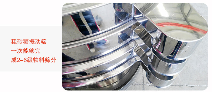 產品簡介:粗砂糖振動篩型號齊全,篩機主要材質分為SUS304不銹鋼材質或Q235碳鋼材質兩種,大小直徑可從400至1500mm的1-5層的不同型號篩機,更可以根據物料特性不同、環境差別、篩分目標不一、場地限制、生產線配置等條件專業為所需用戶設計生產鈦材振動篩