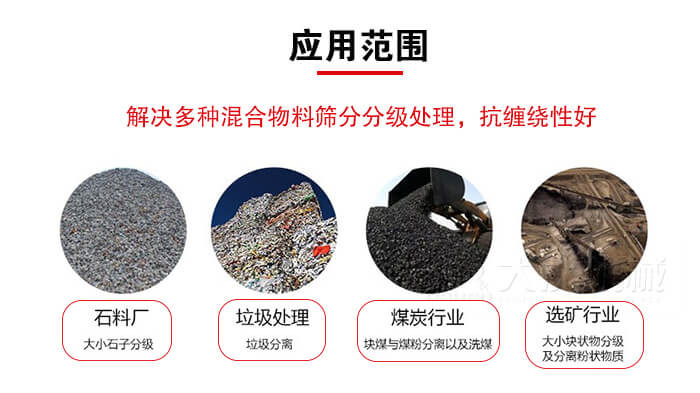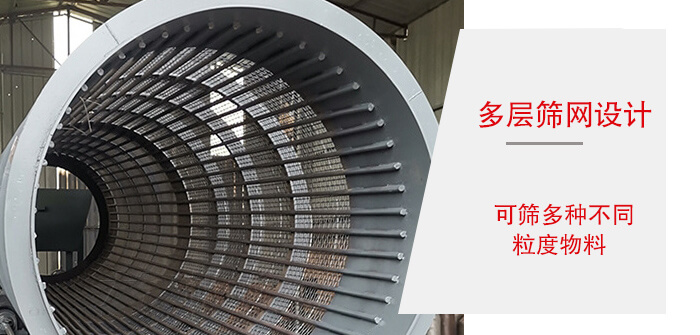4、采用多層篩網設計,可篩多種物料。篩下產品大小于100mm,中間10~50mm,細可達≤3mm以下。