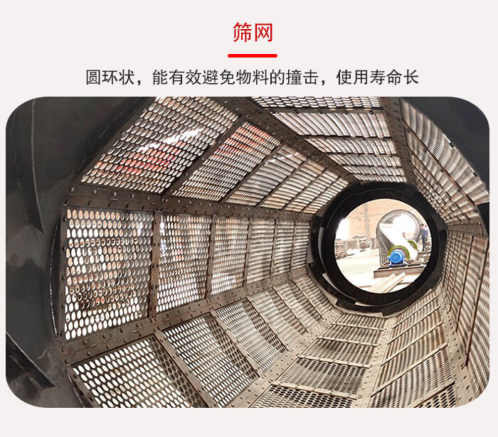 3,GTS滾筒篩篩網是圓環狀,能有效避免物料的撞擊,使用壽命長。