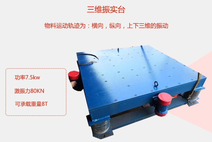 三維振實臺常用于混凝土,預制件試塊,樹脂砂,消失模的造型,可通過調節電機激振力大小使平臺上物料實現理想的形式。