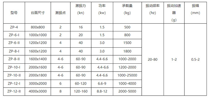 三維振實臺其利用振動電機作為振動來源,使物料在工作臺上完成:橫向,縱向,上下三維的運動軌跡,所以稱之為三維振實臺。該設備的振動電機個數為雙數例如:4,6,8,10等而振動電機的型號決定了三維振實臺的主要技術參數。